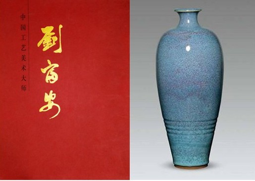 圖3:大紅袍畫冊《中國工藝美術(shù)大師劉富安》封面及在2011年納高拍出134萬的大紅袍鈞瓷·梅瓶