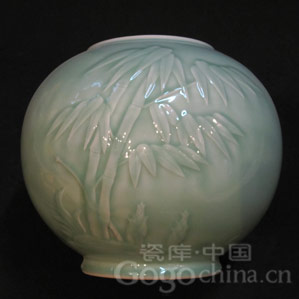 圖:龍泉青瓷弟窯梅子青竹報(bào)平安天球瓶