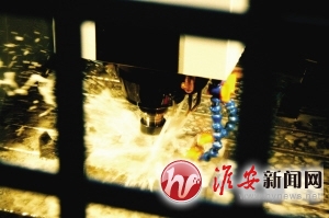 在工博會(huì)現(xiàn)場(chǎng),淮安通用水刀科技有限公司將公司的產(chǎn)品搬到現(xiàn)場(chǎng)演示。隨著開(kāi)關(guān)的啟動(dòng),一個(gè)細(xì)小的水柱在高壓作用下,射向下面的鋼板。這個(gè)水柱產(chǎn)生的壓力可以達(dá)到320Mpa,相當(dāng)于3200KG的水壓作用在1mm的水柱上。目前,可以切割厚達(dá)15cm的鋼板。
