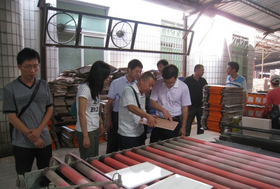 圖為閩清縣質(zhì)監(jiān)局深入瓷磚企業(yè)調(diào)研