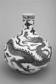 記者曾看到這個國寶級“天球瓶”,直頸、溜肩,球型鼓腹,最鼓處需要成人雙手合抱。工藝十分復雜。圓腹通體畫一回首騰云飛奔的行龍,張口、吐舌、露牙、雙目圓睜、四肢伸展。明代宣德青花瓷器在中國陶瓷發(fā)展史上占有重要地位,而“天球瓶”又是宣德瓷器的重中之重,生產(chǎn)數(shù)量稀少,現(xiàn)在傳世品微乎其微,市場上基本有價無貨,因此專家給其評估價為3億元。