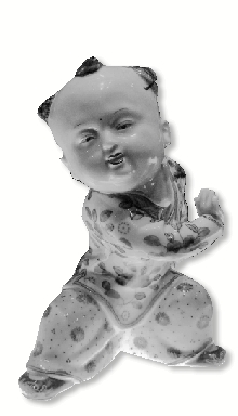 旁邊的陶瓷展區(qū),仿越窯、仿南宋官窯作品專門列出了一排,有器皿的、也有人物的,盡顯古老陶瓷工藝的風韻與精華。中間的青花斗彩《嬰戲——捉迷藏》很值得一看,兩個身著花衣憨態(tài)可拘的幼童玩捉迷藏,一個蒙著眼睛,一個作躲閃狀,那個活靈活現(xiàn)呀,誰見了都喜歡,F(xiàn)場的工作人員笑說:“這么可愛的兩個小人放在這里,看一次樂一次。”