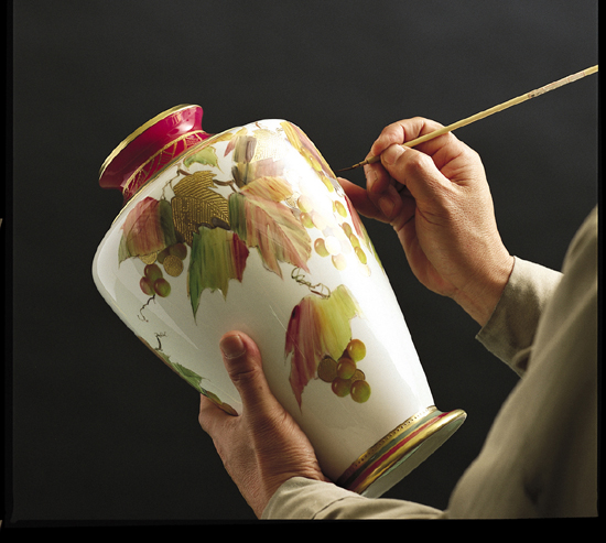 手繪本來是美術,瓷器本來是工藝。將色彩圖案繪在瓷器上便成就了“工藝美術”。東方的工藝美術源遠流長。但是隨著近現(xiàn)代機械的進步,原本由手工做的藝術成形部分,漸漸地由機器去完成了。由此帶來兩方面的“工藝美術災難”:首先,藝術價值在于“人為”,機器作品藝術價值低;其次,機器生產是工業(yè)化行為,流水線出來的藝術品再精細,也因數(shù)量多而泛濫貶值。因此,在西方人觀念中,機制的藝術品雖可被稱之為Art,但是前面須加上“Industrial(工業(yè)、產業(yè),含有機制的意思)”一詞,以區(qū)別于手工的Craft,而成為Industrial Art。自然,Industrial Art的藝術價值就很差。作為工藝美術,只能用Craft,為了強調“手工”,甚至還有handcraft一詞。