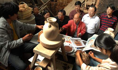 9月26日,湖南工藝美術(shù)職業(yè)學(xué)院的教授來(lái)到望城區(qū)銅官鎮(zhèn)陶藝大師胡武強(qiáng)家,了解長(zhǎng)沙銅官窯技藝傳承現(xiàn)狀。為弘揚(yáng)湖湘民間工藝文化,該校開展“讓民間藝術(shù)走進(jìn)大學(xué)校園”系列活動(dòng),并投入資金相繼為湘繡、竹藝、陶瓷等行業(yè)的省工藝美術(shù)大師建立了工作室。