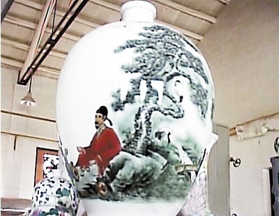 圖為醴陵燒制的全國最大陶瓷酒瓶 株洲網(wǎng)訊 國家商務(wù)部近日公示首批“國家外貿(mào)轉(zhuǎn)型升級專業(yè)型示范基地”名單,醴陵陶瓷基地成功入選。