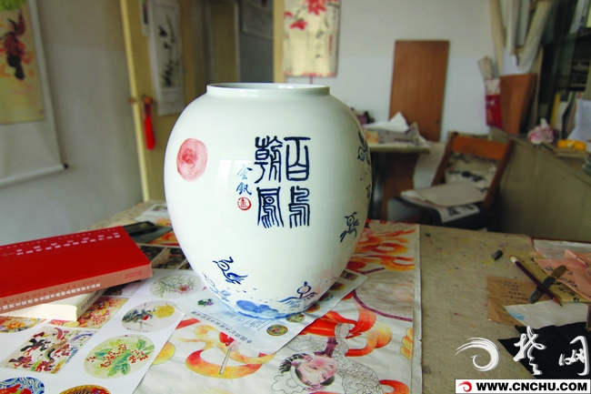 金釩說(shuō):“十一過(guò)后,我還要第四次去景德鎮(zhèn),再燒制5件瓷盤(pán),把這做成一個(gè)系列。”說(shuō)完臉上露出了和藹的笑容。