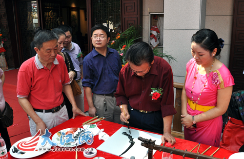 當天,“昌南九老”除帶來多件各自精心創(chuàng)作和收藏的精品力作外,更現場揮毫,并在已經燒制好的景德窯瓷器的胎釉上題詞作畫,讓參觀者近距離領略了陶瓷大師們的高超技藝。