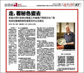 在杭州建一個(gè)國際瓷文化交流中心,是被譽(yù)為“復(fù)活國寶的名瓷大師”葉宏明多年的心愿。他曾在全國政協(xié)會(huì)議上,在錢江晚報(bào)人文大講堂上多次呼吁(詳見錢江晚報(bào)2010年9月7日B7版)。