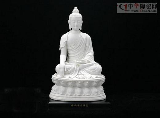 “釋迦牟尼佛”主管著中央娑婆世界,他有“大智文殊菩薩和大行普賢菩薩”兩位脅侍,號(hào)稱華嚴(yán)三圣。是這個(gè)世界的教化者,是佛教教主,是藏傳佛教崇敬的大日如來(lái)。其作品是以中國(guó)國(guó)家博物館之明代銅像為范本,采用“白如雪、潤(rùn)如玉”的建白瓷,以瓷都德化傳統(tǒng)的陶瓷雕塑技藝構(gòu)造出“以仁來(lái)愛(ài)人,以仁愛(ài)這種的心來(lái)教化眾生”的“釋迦摩尼佛”。