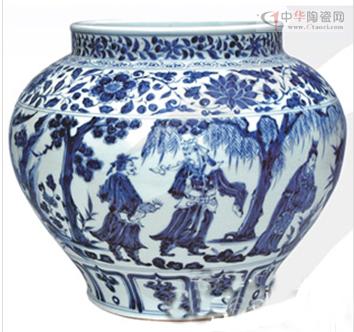 圖:元青花三顧茅廬陶瓷罐