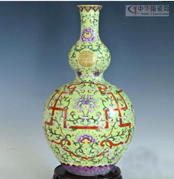 圖:清乾隆萬壽連延粉(洋)彩葫蘆瓶