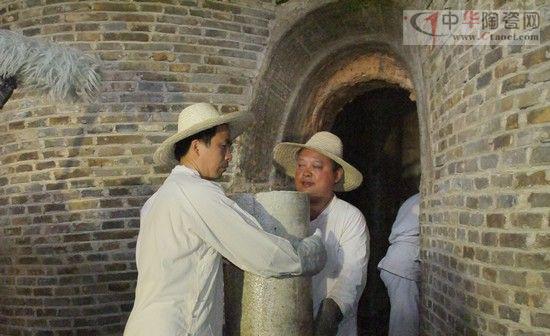 當(dāng)天上午8點(diǎn)38分,在古窯非物質(zhì)文化遺產(chǎn)代表性傳承人、把樁師傅胡家旺和眾窯工師傅的“開窯”口號聲,明代葫蘆窯正式開窯。隨后窯工用太平鉤敲開葫蘆窯窯門,一件件精美的仿古陶瓷從窯爐匣體搬出,在眾窯工的手中傳遞。雖然此時窯內(nèi)的溫度還有六七十度的高溫,但在場的各位都被這一情緒所感染。而來自中央電視臺新聞頻道和《瓷路》紀(jì)錄片的兩路記者也在緊張的攝制,記錄這一美妙的瞬間。