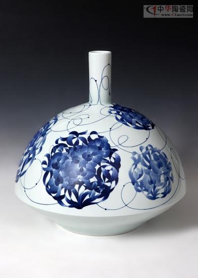 鄒樂陶瓷作品現(xiàn)代青花《風(fēng)隨花動(dòng)》。
