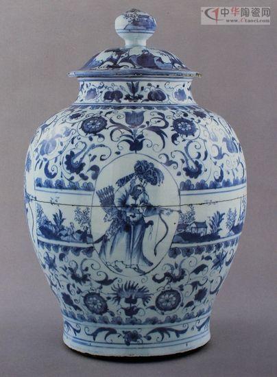 到了明末,說到外銷瓷會提到一艘著名的沉船——“哈徹”號。從這艘沉船上打撈出23000余件中國瓷器,風(fēng)格可以分為兩類,一類是典型的轉(zhuǎn)變期風(fēng)格,另一類是克拉克瓷。這其中還有一些歐洲樣式的瓷器,例如一些小芥末罐和貓型夜燈。明代瓷器大量輸入歐洲,就引發(fā)了當(dāng)?shù)啬7轮袊善鞯纳a(chǎn),這其中最著名的就是荷蘭的德爾夫特生產(chǎn)的錫釉青花陶,裝飾風(fēng)格非常中國化。為了達(dá)到中國青花瓷器的這種效果,荷蘭的陶工會先在陶胎上涂一層薄薄的釉料,先低溫?zé)淮,然后再用鈷料繪制圖案,最后罩一層透明釉高溫?zé)。在東西方交流互動的過程中,就會出現(xiàn)雜交的圖案設(shè)計,荷蘭生產(chǎn)的德爾夫特陶上繪有中國人的形象,而中國生產(chǎn)的克拉克瓷器邊飾采用歐洲的花卉,人物則是波斯形象。不獨是在荷蘭,當(dāng)時世界各地都在仿制中國的青花瓷器。伊朗在17世紀(jì)仿制的產(chǎn)品,邊線用黑色而不是藍(lán)色,這是與中國青花瓷器的區(qū)別。德國在17世紀(jì)也有仿制。早期英國使用的粗制鉛釉陶幾乎是在100年之內(nèi),都轉(zhuǎn)變成為這種錫釉青花陶。明代的外銷瓷器對歐洲產(chǎn)生了很大的影響。