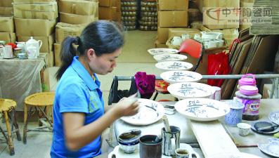 陶瓷分為貼花和手繪2種,一般貼花的大都屬于批量生產(chǎn)的,成本和價(jià)格相對(duì)都比較低。而手繪陶瓷是藝術(shù)家在陶瓷上繪畫的藝術(shù),具有獨(dú)特性,藝術(shù)價(jià)值也相對(duì)比較高,成為人們收藏和送禮的佳品。如今,潮州市一些陶瓷企業(yè)千方百計(jì)提高產(chǎn)品附加值,重拾手繪陶瓷工藝,從而贏得國(guó)內(nèi)外客戶的青睞。圖為一企業(yè)工人在手繪陶瓷。