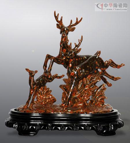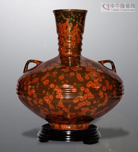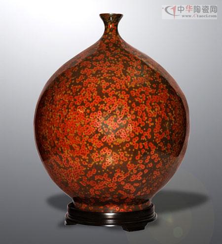 在近期結(jié)束的“2012中國國際輕工消費(fèi)品展覽會(huì)”上,來自廣東的全福陶瓷實(shí)業(yè)有限公司的耀變天目金錢花釉藝術(shù)瓷獨(dú)放異彩,成為博覽會(huì)的亮點(diǎn)。“耀變天目”瓷器為我國南宋時(shí)代最佳名瓷,傳世珍品早已失傳700多年。僅存的三件“耀變天目茶碗”珍品,被日本作為國寶收藏于日本藤田博物館。“耀變”之意是形容釉中晶體周圍色彩豐富,并隨著觀察角度不同而變化。其燒成技術(shù)被稱為“神技”,“神技”神就神在施一種釉色,一經(jīng)燒制既呈現(xiàn)出色彩斑斕、變化莫測(cè)、斑點(diǎn)各異的結(jié)晶產(chǎn)品來,是人意不可為的純天然形成。