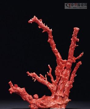 奪得該專場(chǎng)拍賣季軍的是一件高41cm的清代“珊瑚雕麻姑獻(xiàn)壽擺件”,此器以整塊珊瑚隨形雕就觀音童子擺件,材質(zhì)潤(rùn)澤,刀工犀利,觀音雙眉似月,直鼻小口,神態(tài)沉靜祥和,旁立各態(tài)童子,肌圓骨潤(rùn),頗為頑皮,惹人憐愛。整器造型典雅飄逸,雕琢精湛,刻法有力,形神兼?zhèn),古色古香,紅光四射,祥瑞盈堂。最終,其成交價(jià)格為66.7萬元。