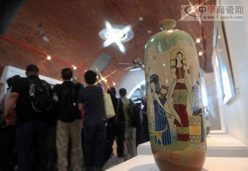 。玻叭,江西景德鎮(zhèn)當(dāng)代陶瓷藝術(shù)展在臺北開幕。共有59件展品參加了為期兩天的展覽。