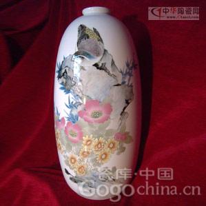 圖:丁華漢大師手繪精品釉下五彩鳥語花香橄欖瓶