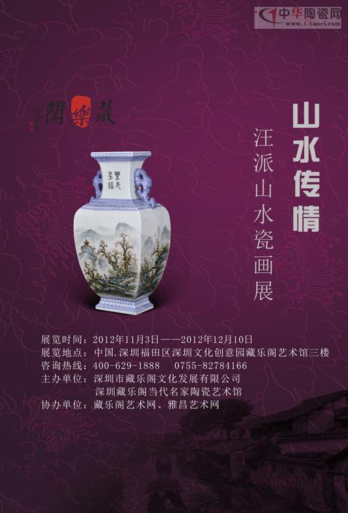 本次《 山水傳情——汪派山水瓷畫展》將于11月3日開幕,此次展覽匯集的名家作品有:汪野亭、汪小亭、汪平孫、汪桂英、王步、程門、潘匋宇、量甫、程煥門、珠山八友等汪派山水瓷及諸多民國瓷器大家的作品共百余幅堪稱精品的傳世之作。