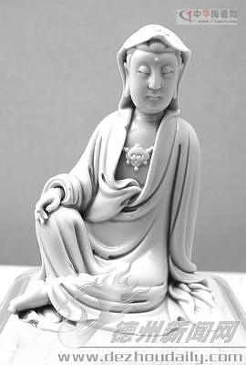 我國瓷器制作歷史悠久,品種繁多,除了高貴典雅的青花瓷和色彩艷麗的彩瓷外,素雅的白瓷以自然天成的獨(dú)特美深受喜愛。白瓷最早出現(xiàn)于北朝,但直到明代才真正成熟,呈現(xiàn)出白釉、甜白釉、青白釉、象牙白等不同釉色特點(diǎn)。其中以明代德化窯的象牙白最為著名,市博物館就藏有一件這種瓷器——建瓷菩薩。