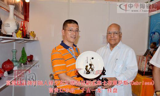 專訪結(jié)束后,中國(guó)駐古巴領(lǐng)事館張拓大使先后帶引古巴部長(zhǎng)會(huì)議副主席卡布里薩斯和外貿(mào)外資部部長(zhǎng)羅德里參觀了富貴紅展館,富貴紅品牌創(chuàng)始人徐少東分別向他們贈(zèng)送了富貴紅文化禮品《龍盤》和《龍瓶》。