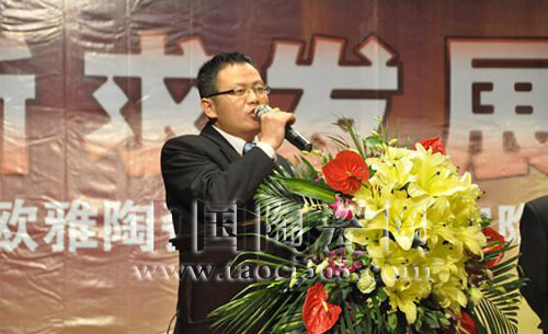 金歐雅陶瓷營銷總經(jīng)理于加運進行年終總結(jié)發(fā)言
