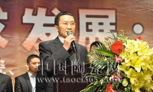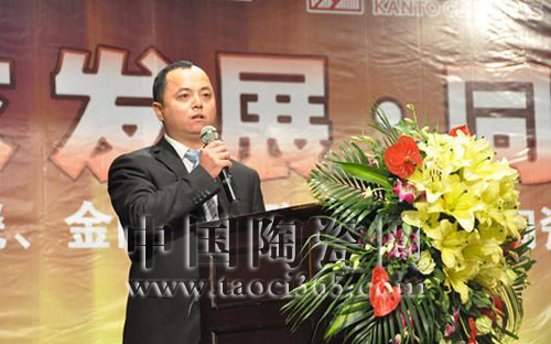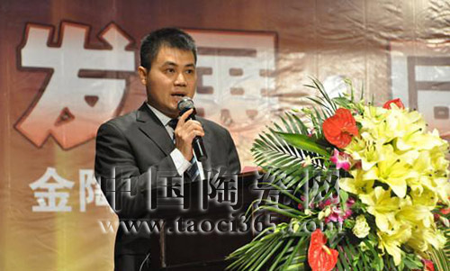 珈瑪陶瓷營銷總經(jīng)理鄒文軍進行年終總結(jié)發(fā)言