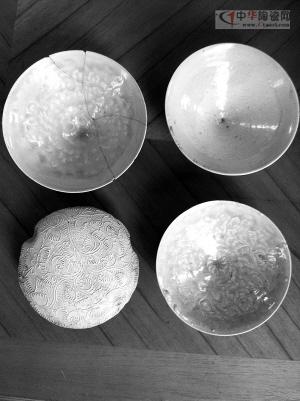 青白瓷碗在午后的陽光下發(fā)出一股幽幽的青光,釉勻瑩潤,白中泛青,叩之有金屬之聲。印花模具則花紋繁縟細膩,布局嚴謹。
