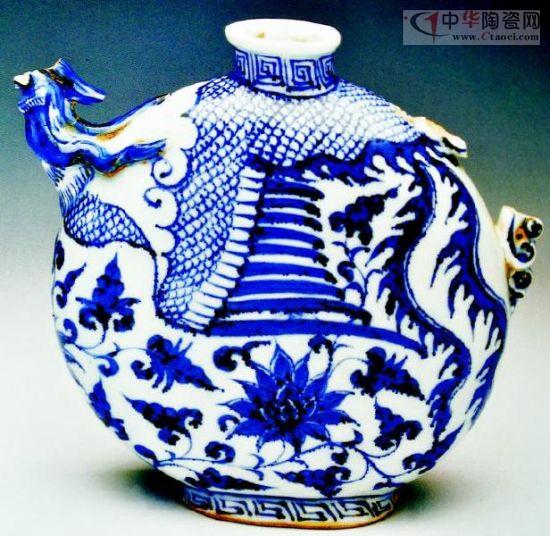 元代青花鳳首扁壺。追溯中國(guó)近代歷史,元代的中國(guó)海外貿(mào)易比較繁榮,大量的中國(guó)青花瓷器被運(yùn)輸?shù)搅酥袞|地區(qū),尤其是景德鎮(zhèn)燒制的青花瓷器,胎體潔白、釉色純凈、青花色澤濃艷青翠,漂亮無比,非常受當(dāng)?shù)鼐用竦南矚g。