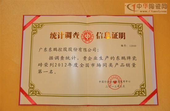 2013年3月22日,由國家統(tǒng)計(jì)局中國行業(yè)企業(yè)信息發(fā)布中心(CIIIC)發(fā)布的信息顯示,東鵬陶瓷在家居建材預(yù)期增速減緩的情況下仍實(shí)現(xiàn)了兩位數(shù)增長,銷值高達(dá)35億元,成為2012年建陶行業(yè)銷量最高品牌。