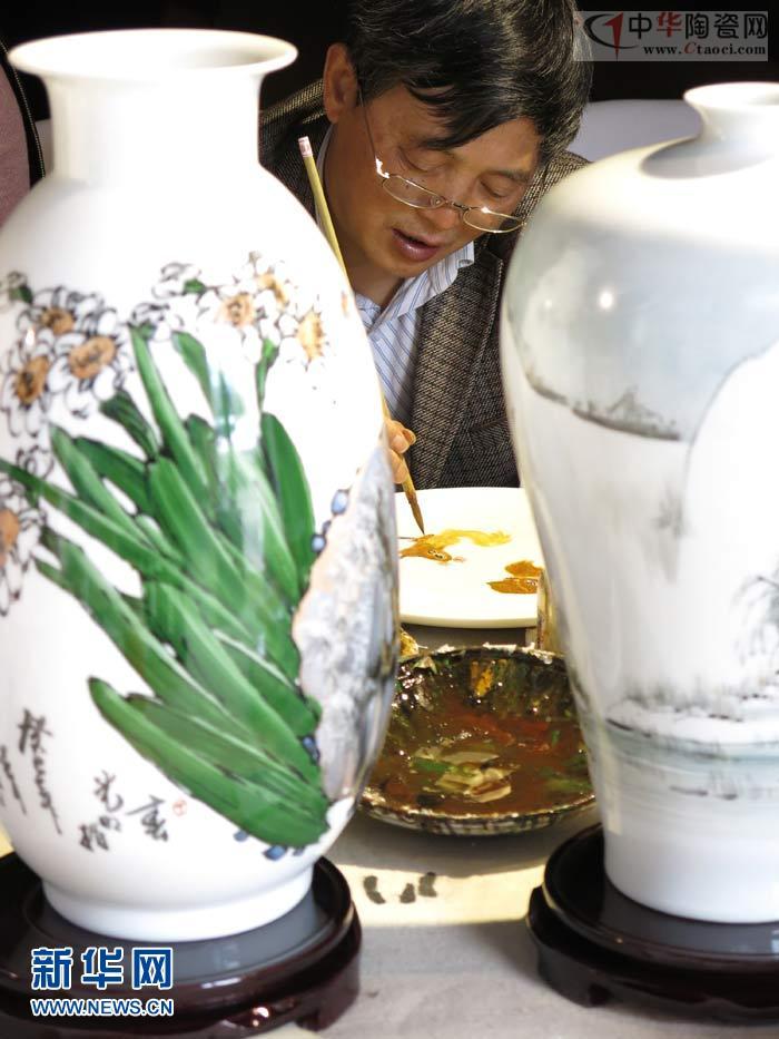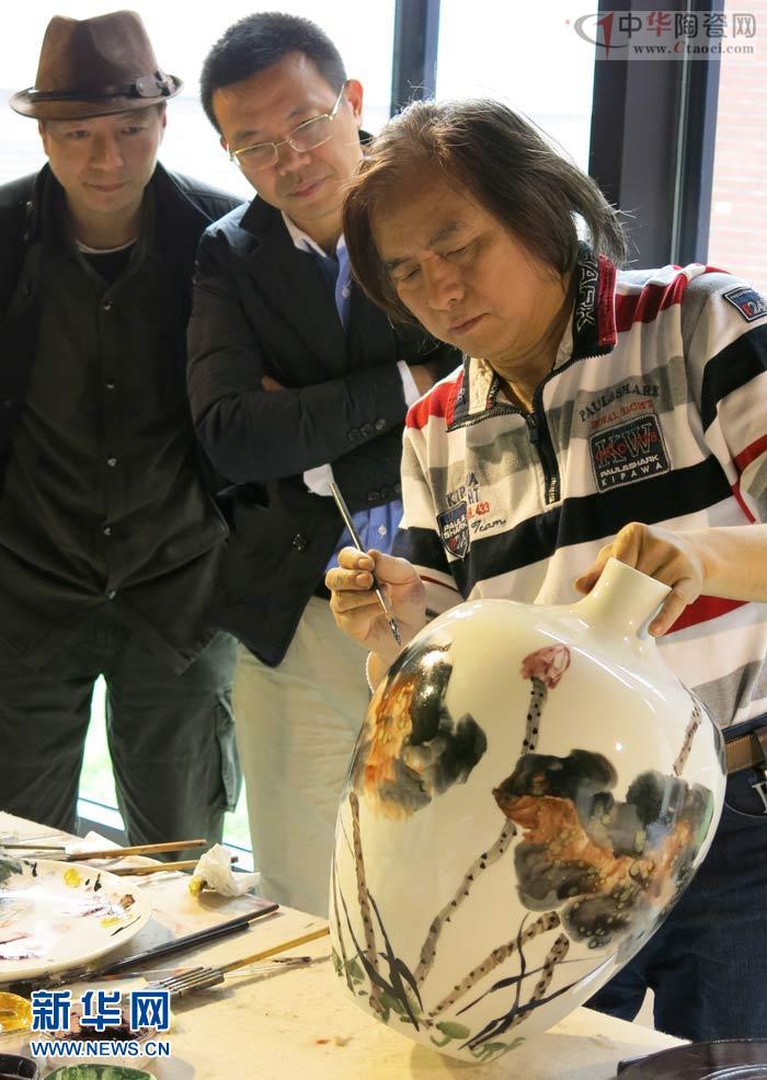 4月22日,江西景德鎮(zhèn)陶瓷研究所所長(zhǎng)、中國工藝美術(shù)大師賴德全率寧勤征、涂翼報(bào)大師等陶藝專家10余人進(jìn)京在馬奈草地美術(shù)館展示大師陶藝制作風(fēng)采,現(xiàn)場(chǎng)創(chuàng)作青花釉里紅、古彩、五彩、瓷板畫等陶瓷藝術(shù)品,展示景德鎮(zhèn)大師們的陶藝精品,傳播陶藝文化。中國工藝美術(shù)大師寧勤征在進(jìn)行陶藝創(chuàng)作。