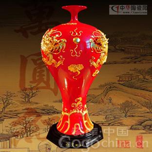 漆線雕雙龍戲珠美人瓶|工藝品擺設(shè)花瓶