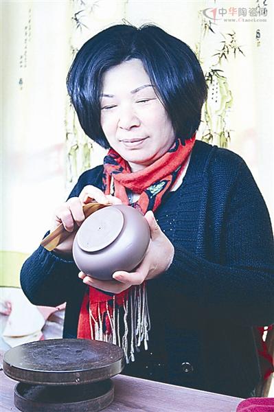 余美珍,典型的江南女子,秀麗溫婉,畫著淡淡的妝容,服裝精致,舉止優(yōu)雅,表現(xiàn)出十足的女子性情和一種熱愛生活的態(tài)度。這樣一個(gè)世俗世界里的美麗女子,安靜地生活,快樂地創(chuàng)作,因有著一份對紫砂的熱愛,多了一份個(gè)性,和周遭的人又有了一點(diǎn)不一樣,就像在這春日的暖陽下,徐徐展放的一朵彼岸花,為紫砂藝苑帶來一片芬芳。