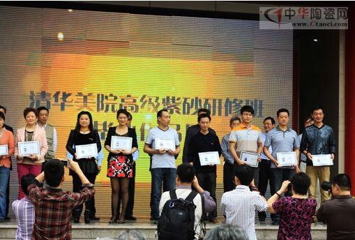 2013年5月4日,首屆清華大學(xué)美術(shù)學(xué)院紫砂藝術(shù)高級研修班結(jié)業(yè)典禮在宜興紫砂工藝廠舉行。江蘇省工藝美術(shù)協(xié)會會長馬達(dá)、江蘇省工藝美術(shù)協(xié)會秘書長汪彤,哈爾濱慶豐集團(tuán)總經(jīng)理曹利銘、宜興市副市長尹志華、丁蜀鎮(zhèn)黨委書記馬鐘以及紫砂界中國工藝美術(shù)大師汪寅仙、徐秀棠、呂堯臣、徐漢棠、周桂珍、顧紹培、鮑志強(qiáng)、曹亞麟中國陶瓷大師何道洪、毛國強(qiáng)、曹婉芬、吳鳴、季益順、李守才、邱玉林等共600多人出席了本次活動。各界對培養(yǎng)紫砂界精英予以更大的期望,并為首屆學(xué)生頒發(fā)了證書。