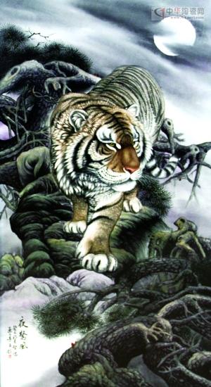 夏仁錦從事陶瓷藝術(shù)創(chuàng)作二十余年,尤其擅長動物走獸繪畫。他帶來的作品中有4幅以虎為主題的瓷板畫,通過釉上新彩的藝術(shù)陶瓷表現(xiàn)形式,刻畫出萬獸之王虎的雄風(fēng)。