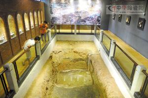位于荷城靈龜園內(nèi)的龍窯遺址陳列館,在花木掩映中,古樸的瓦檐屋頂從遠(yuǎn)處便一眼可見。記者進(jìn)入陳列館內(nèi),首先可見詳細(xì)的遺址介紹說明,整個(gè)陳列館分上下兩層,上層擺放碗、碟、盆、缸碗、碟、盆、缸、耳罐、耳杯等五百多件文物,下層展現(xiàn)整個(gè)窯址發(fā)掘時(shí)的樣貌。