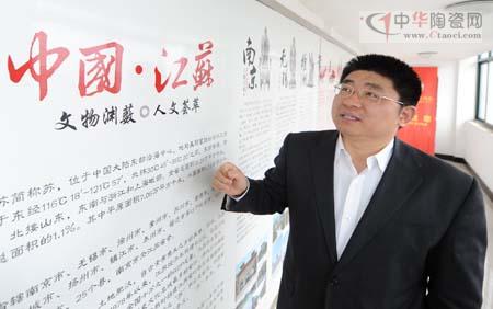 占兆理在義烏市江蘇商會(huì)向客人介紹江蘇的基本情況。