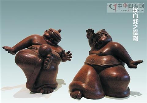 二十世紀九十年代初,當代陶藝家吳小楣開始專作“體育陶藝”,也成為迄今為止國內唯一一位專作“體育陶藝”的藝術家。他以古代體育活動為題材,采用中國漢唐原始陶藝為主要做法,并融入現代陶藝理念,通過十幾年的探索實踐,終于創(chuàng)作出以”盛世風流”為總名題的一系列膾炙人口的作品。在蘇州古玩城的浪石陶藝館里就陳列著他的“漢百戲”“唐馬球”“羅漢拳”等系列。