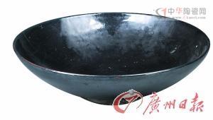 迄今所見的油滴釉器多出自建窯,胎體較厚,器型較小,而這件黑釉“油滴”瓷碗,胎體厚重,釉面漆黑。如此之大和如此之美的油滴碗,具有典型的北方窯口的工藝特征,環(huán)布碗底的油滴斑點,晶瑩透亮,增添迷人的色彩,堪稱瓷中珍品。