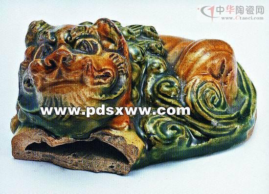 嚴和店窯址出土的精美三彩臥獅。