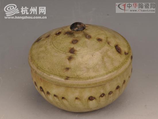 青釉點(diǎn)彩蓋缽,東晉,南京象山王氏七號(hào)東晉墓出土