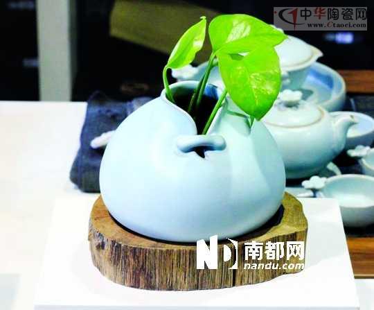 極淡的粉青釉,如煙雨過后的天空,干凈而又澄澈。圓潤的造型簡潔而厚重,“旗袍立領(lǐng)”和“盤扣”的瓶口設(shè)計,平添幾分雅致和韻味。