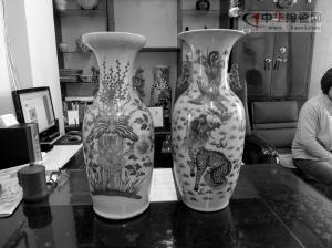 “這種嫁妝瓶也被稱作撣瓶,以前,主人經(jīng)常把雞毛撣子插放在里面。”張應(yīng)嘉說,從收藏價值看,單只價值10萬元以上。