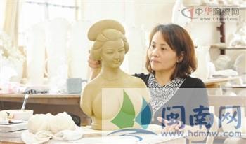 陳麗玲的陶瓷技藝融合了各種瓷質(zhì)之長,以女性視角,塑造優(yōu)雅的女性形象。成于她手的“金陵十二釵”系列美女,比如,《黛玉埋香》、《湘云醉酒》、《妙玉奉茶》等,將我們陶瓷家族的清滑如脂、細(xì)膩溫婉,發(fā)揮得淋漓盡致,F(xiàn)在,陳麗玲計(jì)劃設(shè)計(jì)唐宋明清不同朝代的女性形象,演繹一回陶瓷版本的穿越故事,特別讓人期待。