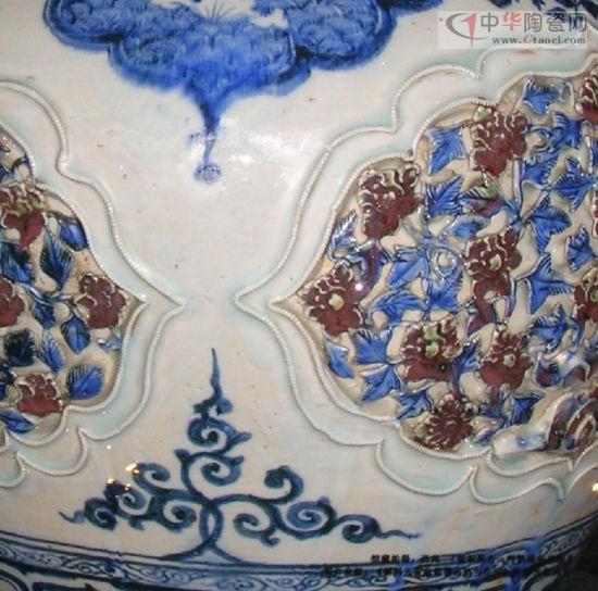以前人們認為開光內(nèi)花卉屬于鏤空,仔細觀察其實不是,正確的屬于模印貼塑,嚴格意義上的叫法是:元代青花釉里紅開光四季花卉貼塑蓋罐。鑒于目前發(fā)現(xiàn)的此類器物很少,就是我在景德鎮(zhèn)窯址區(qū)爬了好多年,包括國內(nèi)很多地區(qū)的建筑工地,也很少發(fā)現(xiàn)這類殘器標本(其他類的青花釉里紅標本有發(fā)現(xiàn))。這可能屬于同一時段燒制的作品。首先,元代青花釉里紅開光鏤雕大罐的有幾個部分是模壓成型,然后組合粘貼完成。整個過程不存在鏤雕過程。青花釉里紅燒制難度很大,青花鈷料高溫下相對穩(wěn)定,而釉里紅主要是氧化銅,高溫下很容易揮發(fā),所以要把這兩種同時燒出來,沒有一定的技術(shù)手段和成熟的燒窯經(jīng)驗,是很難完成的。這也是青花釉里紅比較少見的原因。