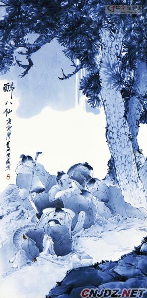 黃景藏雖有得天獨厚的家學養(yǎng)成,但他不滿足于自己的現(xiàn)狀,他先后在景德鎮(zhèn)陶瓷職工大學、江西師范大學進修學習,在掌握傳統(tǒng)工藝的基礎上,他的藝術視野和思想觀念得到了進一步提升。他的大膽突破和他的屢敗屢戰(zhàn)的堅持,終于迎來了他藝術生命中的又一個明媚春天。在一次全國工藝美術百花獎評選活動上,黃景藏的作品青花分水人物《醉八仙》獲得金獎,贏得了業(yè)界人士的一致肯定。該作品形態(tài)布局一氣呵成,局部勾勒簡約數(shù)筆,分水色階過渡自然,柔和勻凈,同一筆中也能分出不同的濃淡筆韻,人物刻畫鮮活生動,富有神韻。其溫潤而虛實相間的青花分水技法,將人物性格特征刻畫得惟妙惟肖、入木三分,填補了歷來陶瓷青花分水人物的空白,形成自己獨特的陶瓷藝術風格。