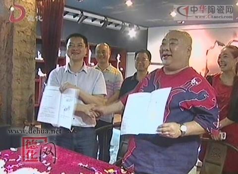 【同期聲 銘思藝陶瓷有限公司總經(jīng)理 林國華:我就想以名人的效應推動德化陶瓷會比較快,代言就是包括他的肖像權(quán),還有三年里以他名義代言所作的推廣,包括大幅廣告,包裝這一塊的,也授權(quán)來進行推廣。】