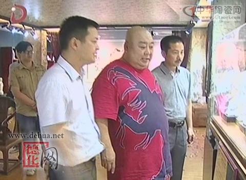 在銘思藝文化發(fā)展有限公司的陶瓷展廳內(nèi),大家紛紛拿起手機、相機拍起照來。鏡頭中的這位就是扮演李大嘴的著名演員程思寒。他身披沙曼、手握陶瓷,為我縣陶瓷企業(yè)做起了形象代言人。