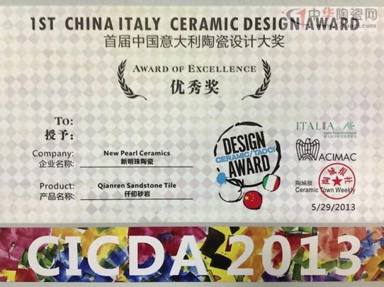 冠珠仿古磚“仟仞砂巖”喜獲“首屆中國(guó)意大利陶瓷設(shè)計(jì)大獎(jiǎng)”